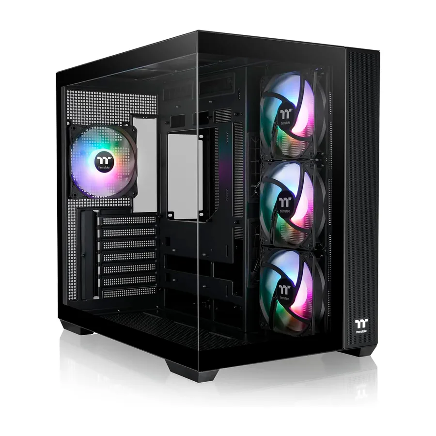 El chasis de torre intermedia The View 380 TG ARGB es un chasis ATX de doble cámara que admite placas base con conectores ocultos de ASUS, MSI y GIGABYTE y viene con cuatro ventiladores ARGB Lite de 120 mm con cojinetes hidráulicos. Su iluminación RGB se puede controlar mediante el software de placa base de ASUS, GIGABYTE, MSI y ASRock. Además, se pueden instalar hasta diez ventiladores de 120 mm en el chasis y se puede colocar hasta un radiador de 360 mm en la parte superior y un radiador de 280 mm/240 mm a la derecha, lo que brinda a los usuarios finales más flexibilidad para construir su configuración ideal.